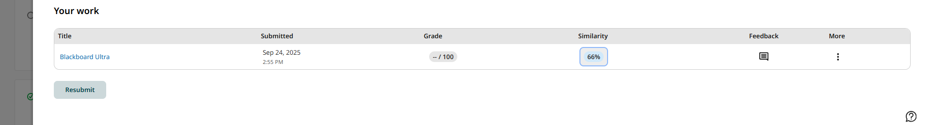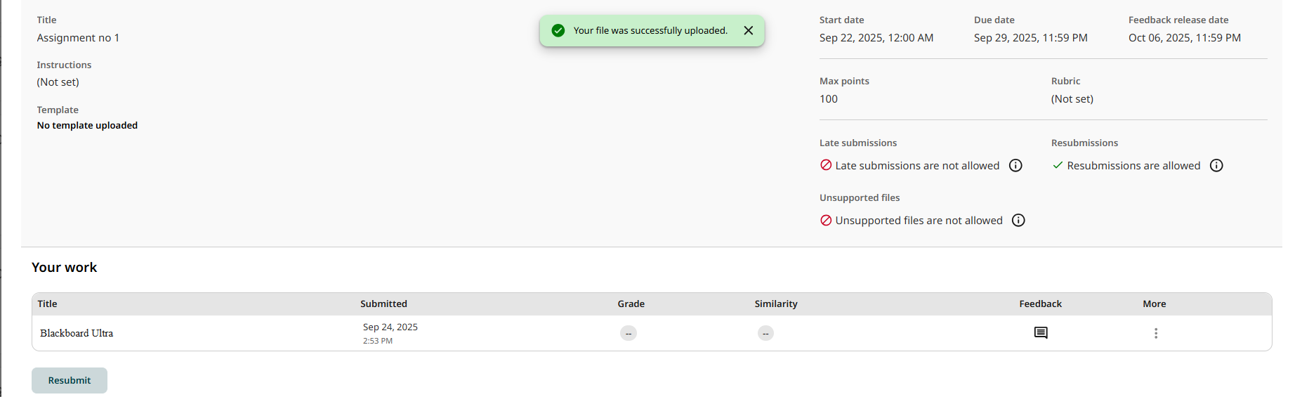 In the Your Work section, you can see the active papers of this assignment, and you can resubmit new ones.